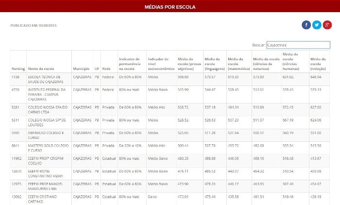 O Instituto Nacional de Estudos e Pesquisas Educacionais Anísio Teixeira (Inep) divulgou na manhã de quarta-feira, 5 de agosto, as notas por escola da edição do ano passado do Exame Nacional do Ensino Médio (Enem 2014).