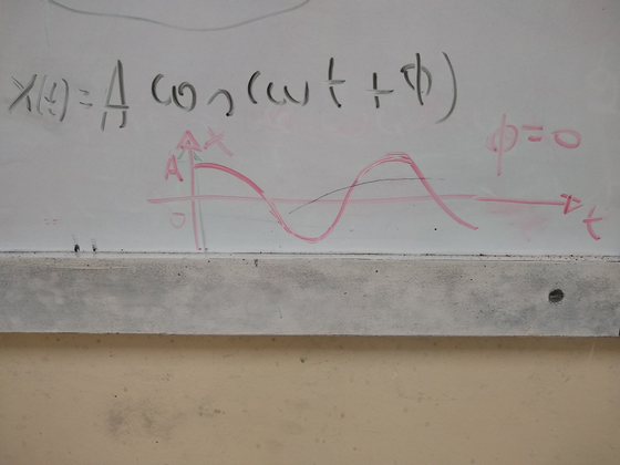 Aula do professor Rafael Rodrigues, demonstrando a equação horária do oscilador harmônico unidimensional do sistema massa-mola, executando oscilações harmônicas simples (OHS).